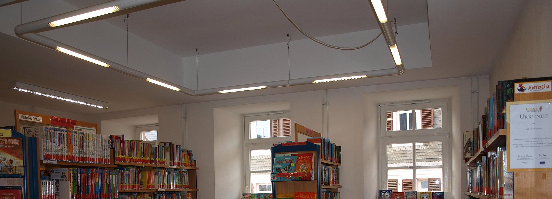 Bilderbücher, Comics, Bücher für Leseanfänger und Leseratten, kindgerechte Sachbücher und spannende Jugendliteratur. Darüber hinaus können Hörbücher und Kinder-DVDs ausgeliehen werden.